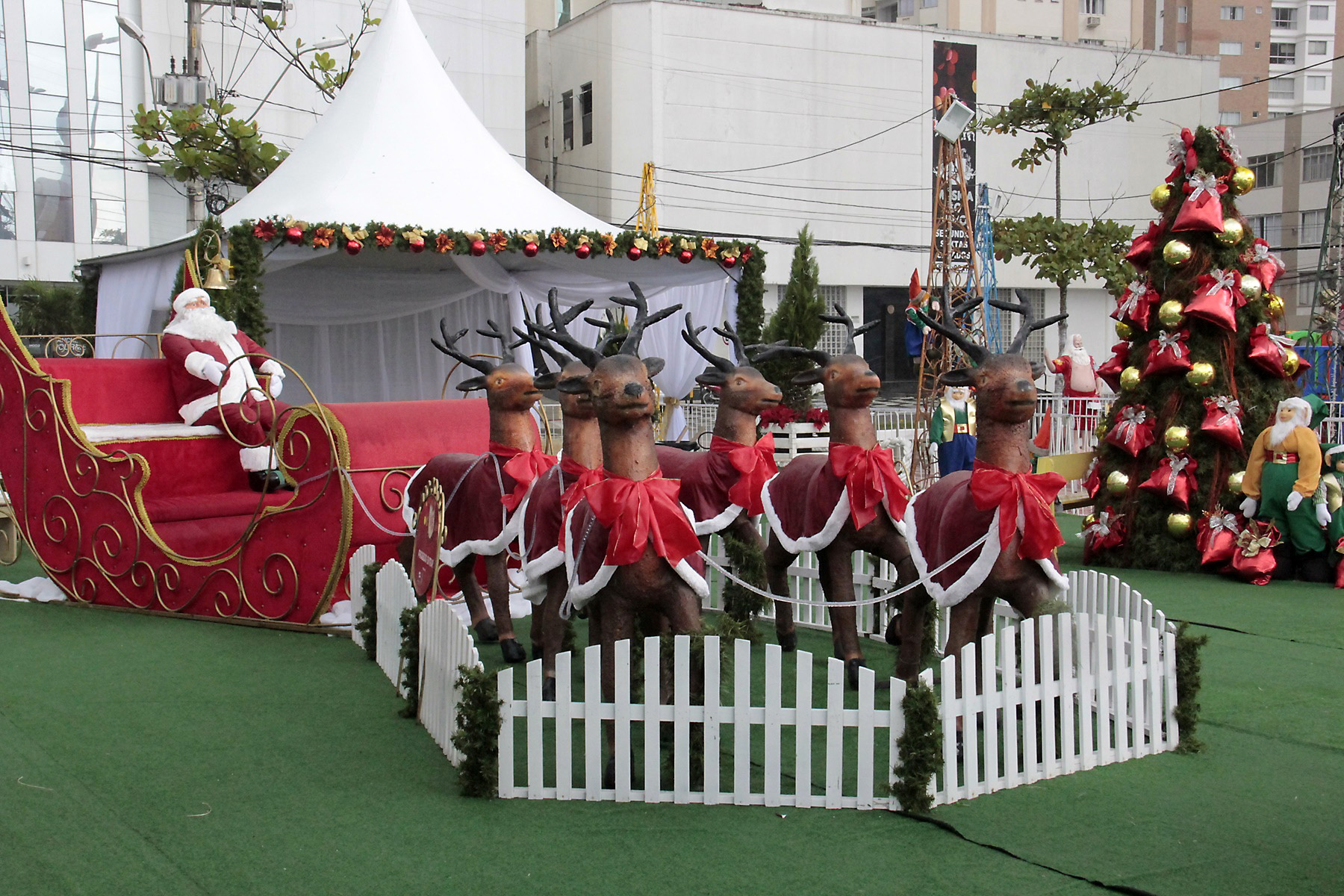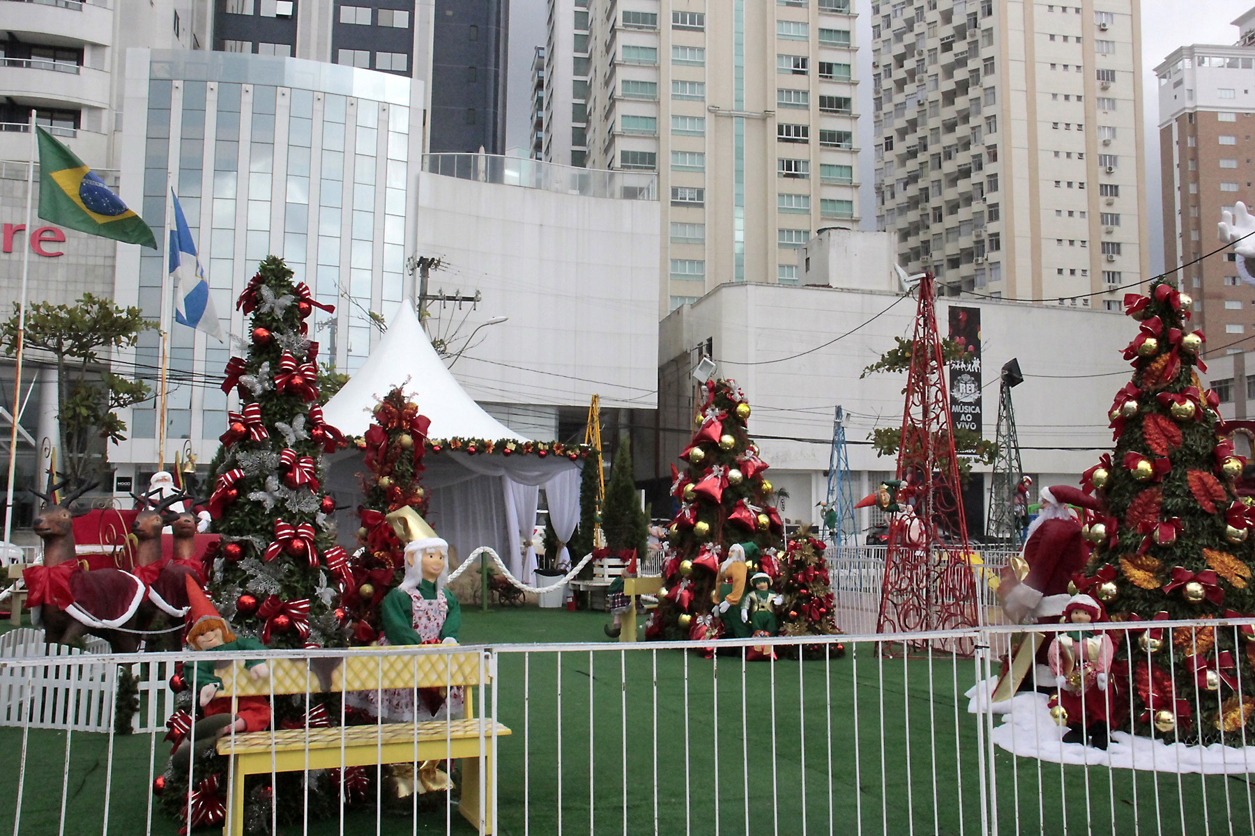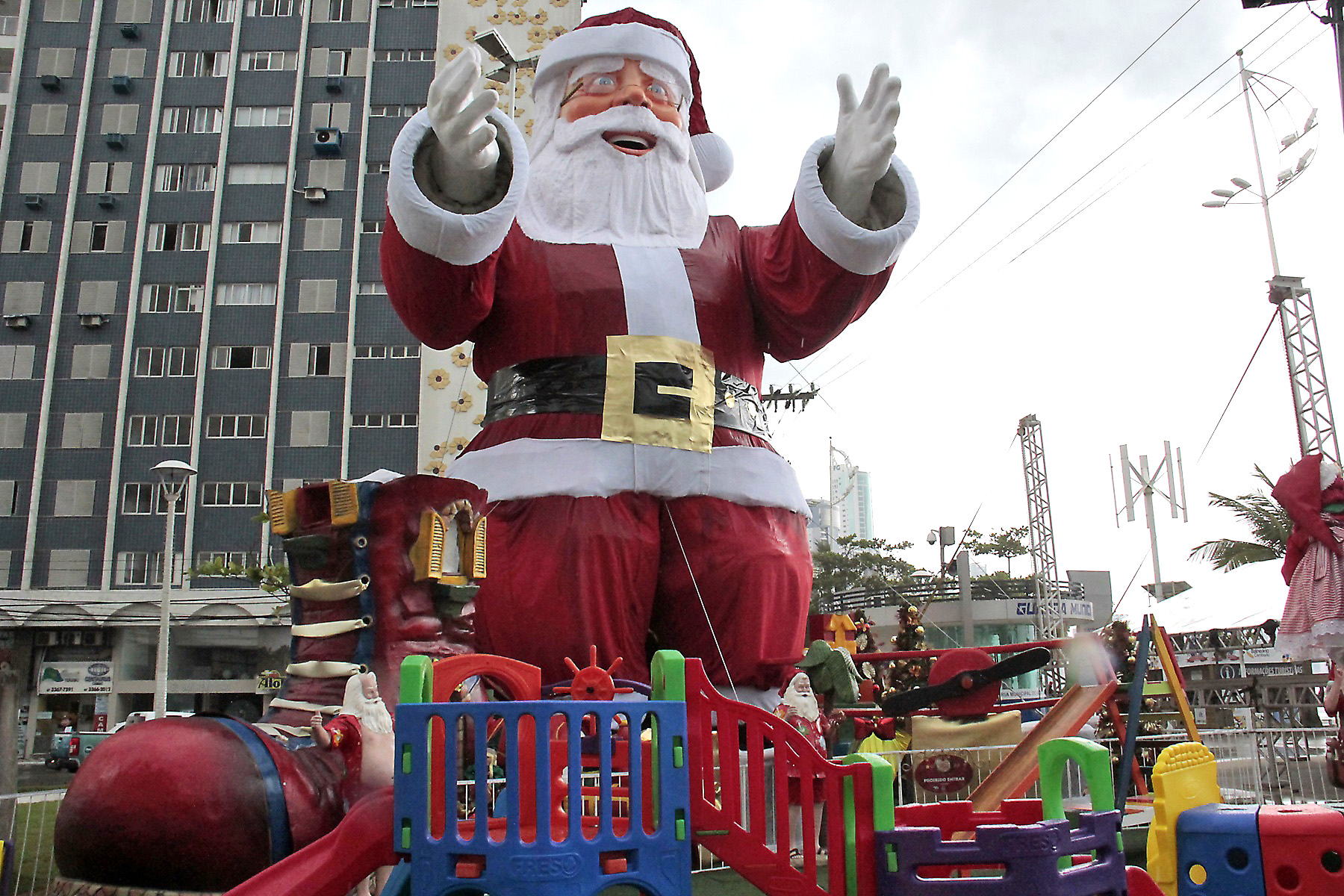 Um Papai Noel de 15 metros de altura já encontra-se na Praça desde a madrugada do dia 4. Ao lado do imponente Bom Velhinho, existem dois pontos de decoração. Um deles traz um aspecto mais lúdico, voltado às crianças. Papais Noéis vestidos de surfistas e duendes são alguns dos enfeites de decoração. O segundo espaço contempla a tradição natalina, com presépio, pinheiro, trenó e gnomos. Noel, e toda decoração, ficará na Praça até o dia 6 de janeiro.
