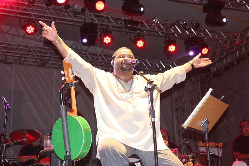 Desde cedo, centenas de fãs já se posicionaram para garantir seu lugar pertinho do palco. O sambista iniciou o show e logo falou da emoção de tocar para um público tão grande e tão animado.