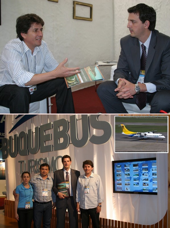 A Buquebus é uma empresa que tem mais de 20 anos de tradição do ramo de transportes no Uruguai. Entre Montevideo e Buenos Aires e na linha Colônia de Sacramento (Uruguai) e Buenos Aires, opera com “ferry boat” em embarcação no estilo catamarã, só que com três andares e boa estrutura tanto para pedestres, quanto para bicicletas, motos e veículos. Há algum tempo, passou a operar com linhas aéreas nestes dois países e agora também servirá ao sul do Brasil. “Em dezembro estaremos aumentando a frequência dos voos para Florianópolis, com pousos e decolagens nos sábados, domingos e quartas-feiras”, explica Dieguez, que recebeu o secretário de Turismo em seu estande, na FIT.