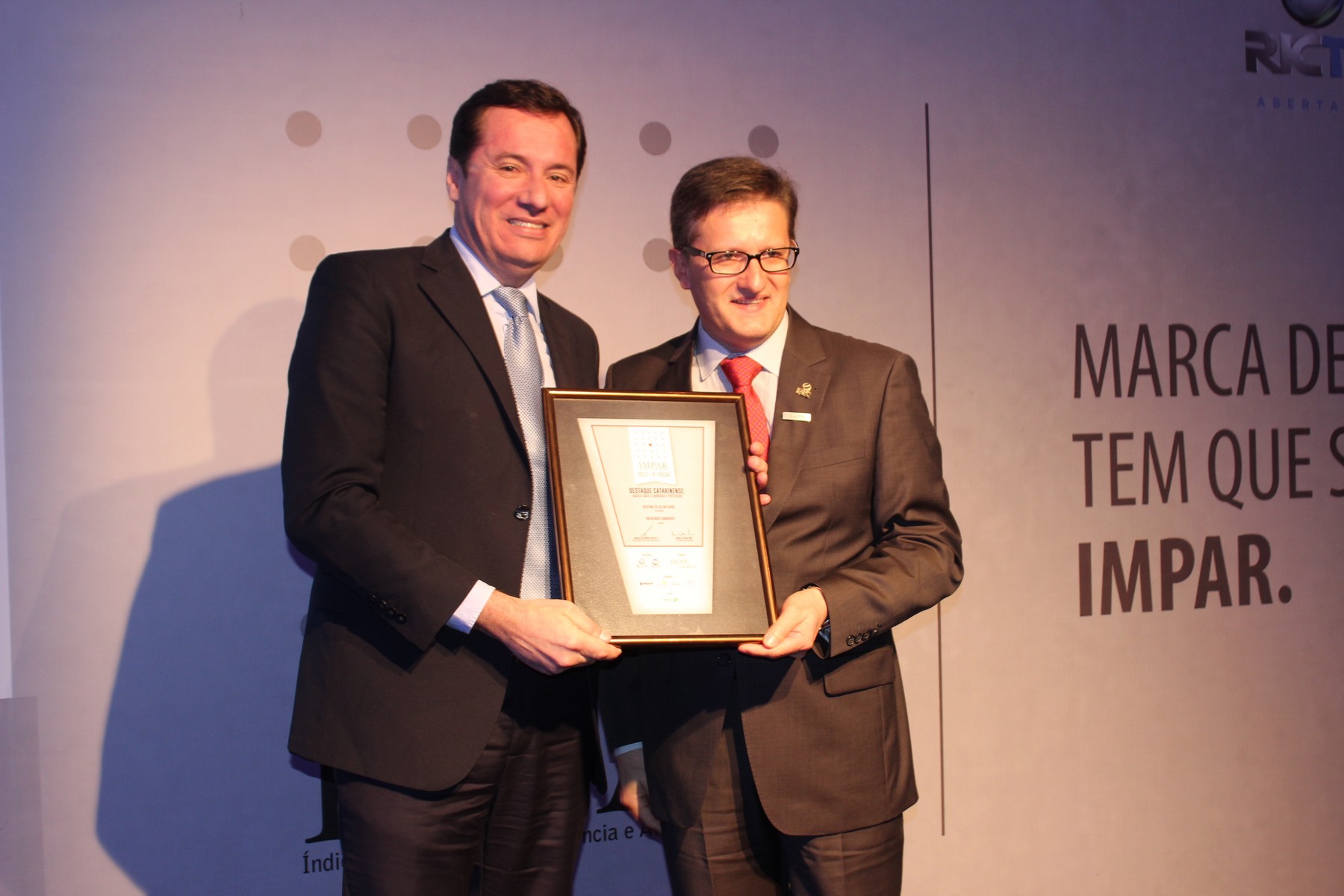 Caracterizada como a mais completa pesquisa do gênero no Sul do Brasil, o projeto Ímpar, como o nome diz, mostrou que Santa Catarina é um estado "ímpar", como explica o presidente executivo do grupo Ric SC, Marcello Correa Petrelli. "Como outras marcas aqui certificadas, Balneário Camboriú foi apontada como a melhor no segmento Destino Catarinense do Interior. O município não existe, é sem igual. Todos querem comprar o seu apartamento, ter seu barco, seus negócios na cidade. E como o estado, hoje temos que homenagear destinos e empresas ímpares, que reconhecemos não só como tendo o melhor produto ou serviço, mas pelo comprometimento sócioambiental também", pontuou.