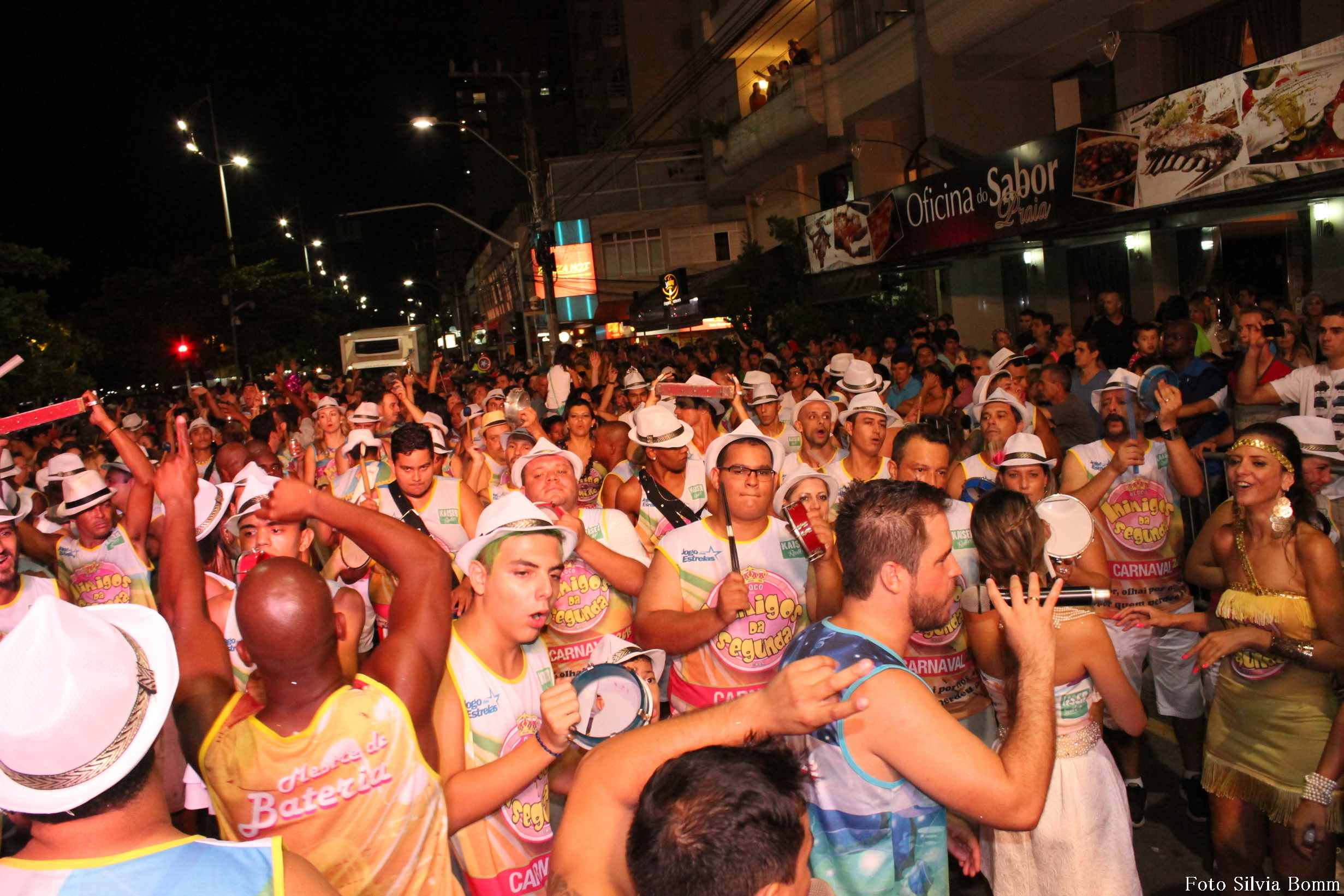 Uma multidão de foliões tomou a Avenida Atlântica na noite deste domingo (15), para aproveitar o Carnaval 2015 dos blocos e trios elétricos de Balneário Camboriú. A promoção da Prefeitura, por meio da Secretaria de Turismo e Desenvolvimento Econômico (Sectur), manteve o público na rua entre 20h e 00h30, numa animação total. A festa foi comandada pelos grupos do DJ Folia, Siri Sarado, o Bloco do Beiço que tocou próximo ao quiosque 21, o Bloco Mexe Mexe, Amigos do Chopp e ainda o Inimigos da Segunda, que fechou com chave dourada a programação da noite.