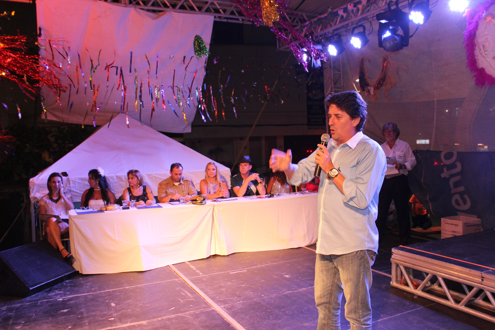 O juri foi formado pela jornalista e apresentadora Cristina Ramires, Lindonora Pinheiro, chefe regional do Ministério do Trabalho do município, pela presidente do Conselho Municipal do Turismo (Comtur) Dirce Fistarol, pelo comandante do 12º Batalhão da Polícia Militar de Balneário Camboriú, Coronel José Evaldo Hoffmann Júnior, pela presidente do Sindicato Sechobar, Olga Ferreira, pelo coordenador do Miss Balneário Camboriú e Santa Catarina e agenciador de modelos, Tulio Cordeiro, e pela Rainha de Honra do Carnaval de Balneário Camboriú, ex-rainha 2012 do evento, Gina Assis. A apresentação ficou a cargo de Carlos Dickmann, da Sectur, e de Marcos Welber, carioca que reside em Balneário Camboriú e comandou a escolha no palco.