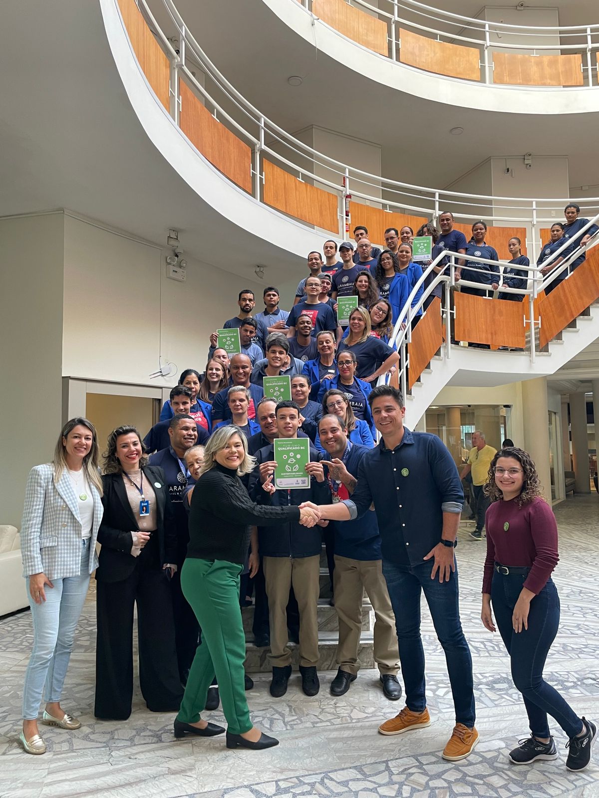 O Selo Sustentabilidade, do Programa Selo Turismo Qualificado BC, foi entregue a mais dois estabelecimentos de Balneário Camboriú na semana passada. O Hotel Marambaia recebeu o selo na Categoria Prata, pelos critérios alcançados. Já a Pousada Estaleiro Village obteve o selo na Categoria Ouro, com destaque para o critério sobre ecoeficiência energética, pois o estabelecimento tem captação própria de energia, por meio de placas fotovoltaicas existentes na pousada. Esse é um dos critérios do Programa que estão alinhados aos Objetivos de Desenvolvimento Sustentável (ODS) da Organização das Nações Unidas (ONU), neste caso, o ODS 7 - Energia Acessível e Limpa.