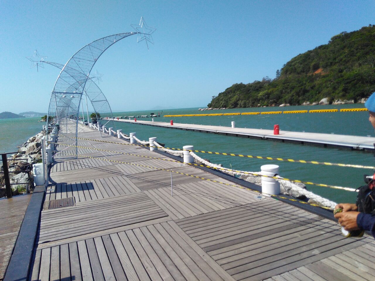 Molhe da Barra Sul está isolado para manutenção da decoração natalina