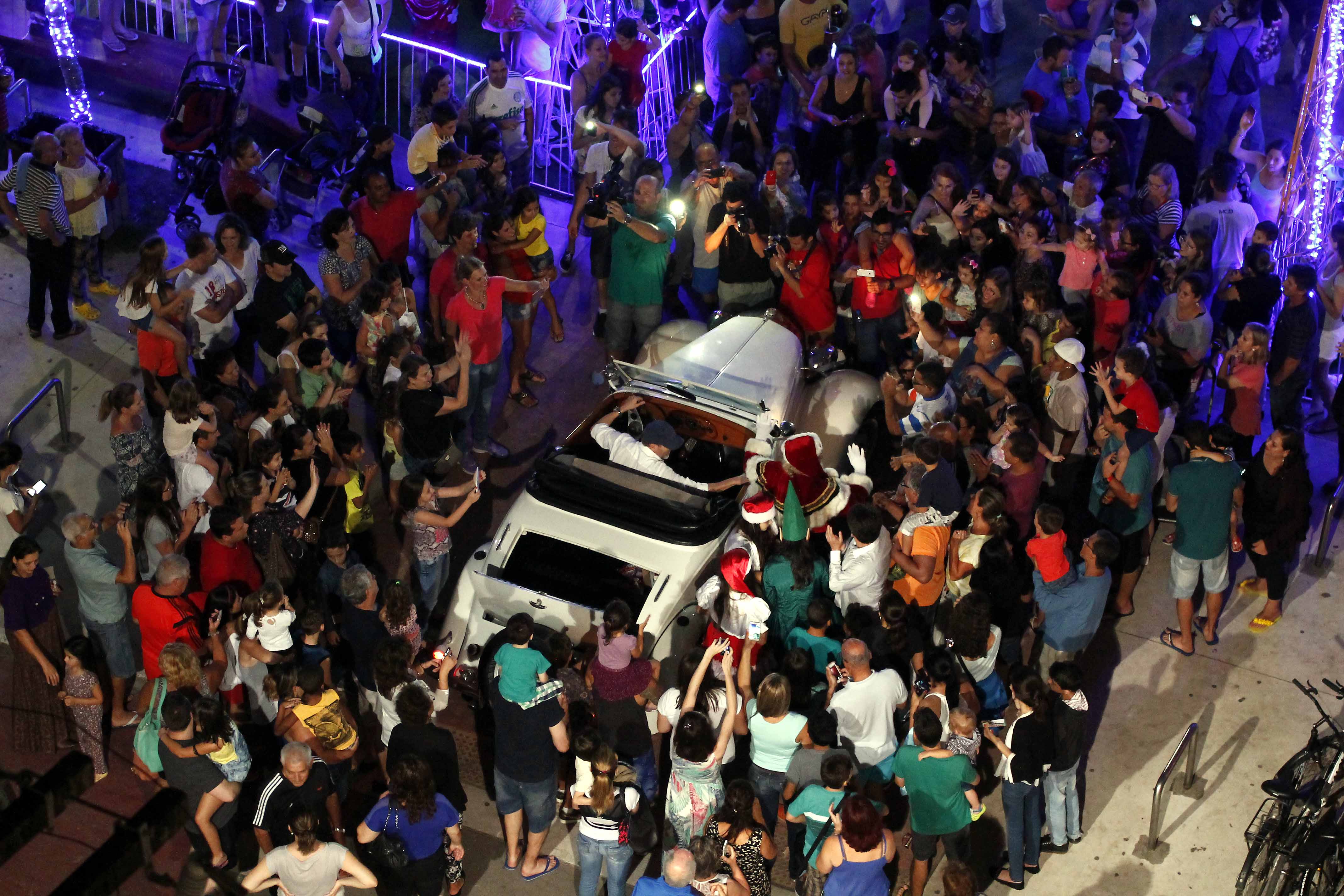 Na noite de sábado (12) a Praça Almirante Tamandaré ficou lotada para a abertura do projeto Brilhos de Natal e a chegada do Papai Noel, em Balneário Camboriú. O evento iniciou por volta das 20h onde uma multidão aguardava a chegada do bom velhinho, que chegou em carro aberto e com suas ajudantes.