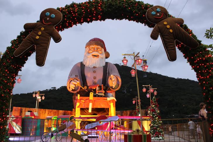 06/12/2013 - Durante as três edições passadas do projeto Brilhos de Natal em Balneário Camboriú, o Papai Noel Gigante encantou turistas, trabalhadores da cidade e moradores na Praça Tamandaré, na sua característica mais conhecida, olhando para todos e pronto para agradar com seu sorriso simpático e sua mensagem de esperança. Nesta quinta edição, o grande Noel de 15,5 metros de altura, o maior do seu gênero na América Latina, agora está com as "mãos na massa" e produz os brinquedos de sua Fábrica, que foi instalada junto ao molhe da Barra Sul. O lançamento da segunda etapa do evento, na noite de sábado (23), mostrou um velhinho incansável, que prepara a festa natalina escolhendo cores aos seus mais belos brinquedos para a garotada.