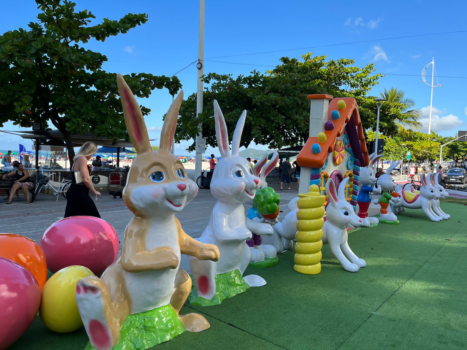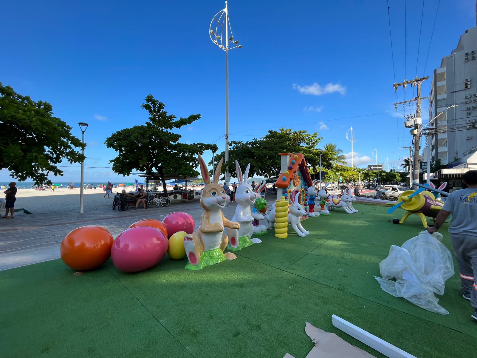 A programação especial será sempre aos sábados, até 8 de abril, no mesmo local (confira no fim do texto as atrações). A Praça Tamandaré, localizada na Avenida Atlântica, no Centro da cidade, está ganhando decoração e brinquedos para as crianças se divertirem nesse período. Entre os brinquedos, haverá avião, torre, carrossel, xícara giratória, todos temáticos. A praça terá ainda escultura em forma de fachada de doces, um coelho luminoso gigante, de quase cinco metros de altura, entre outros enfeites.