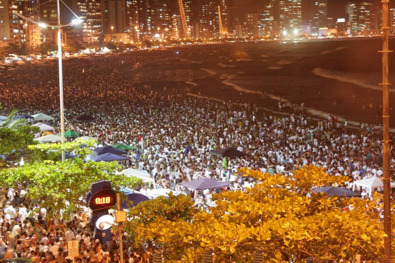 Um recorde de público foi registrado na passagem do ano, na orla da praia, em Balneário Camboriú. O Réveillon Show, que nesta primeira edição inovou o espetáculo de fogos da cidade, poupou a Ilha das Cabras e encheu o céu com lançamentos realizados através de quatro balsas flutuantes, conseguiu atrair aproximadamente 800 mil pessoas à faixa de areia da Praia Central, calçadão, calçadas e na Avenida Atlântica, que foi invadida pelo público em toda a sua extensão, não apenas em parte interditada. O número foi repassado por volta das 16h15 desta sexta-feira, 1o de janeiro, pelo Comando da PM da região, sediado em Balneário Camboriú, à Secretaria de Gestão em Segurança e Incolumidade Pública do município.
