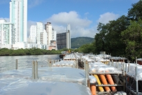 É no rio Camboriú que a empresa vencedora da licitação pela queima dos fogos em Balneário Camboriú, a Vision Show, finaliza os últimos ajustes para o grande show de Réveillon na cidade. Ele contará com uma dezena de balsas que foram preparadas durante aproximadamente 30 dias, após o transporte em seis carretas. O equipamento flutuante ficará na orla central até o início da tarde do dia 1º de janeiro e, para a virada, 31, é de onde serão disparados cerca de 1.350 tiros, ou 20 toneladas de explosivos que foram encaixados em 40 toneladas de estruturas fixas nas embarcações. Se prevê pelo menos 15 minutos de show nos céus, com efeitos que simularão pinturas com cores, desenhos e ritmos, formando figuras geométricas como corações, carinhas felizes, o planeta Saturno, estrelas, coqueiros e círculos. Prometem ainda tirar o fôlego do público, os fogos aquáticos que acendem na lâmina da água e em segundos começam a subir, criando formas de cascatas, velas e giroscópios. O grande final será em cores douradas, com bombas de vários calibres e muitas explosões.