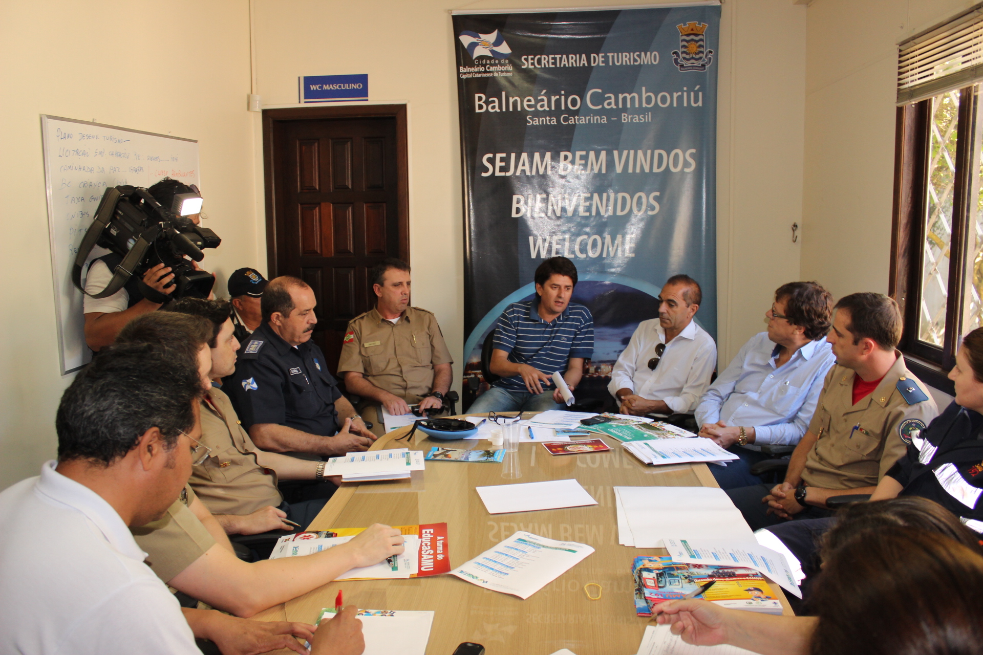 Se aproxima a data de maior movimento de turistas em Balneário Camboriú, e, com ela, a preocupação de poder oferecer uma festa de Réveillon na orla da praia inesquecível, com muita alegria e segurança para todos os moradores e visitantes da cidade. Por isso, a Secretaria de Turismo e Desenvolvimento Econômico promoveu na tarde desta terça-feira (17), em sua sede, uma reunião entre seus funcionários, a Polícia Militar, Corpo de Bombeiros, Polícia Civil, Secretaria de Saúde, Serviço de Atendimento Móvel de Urgência (SAMU), Secretaria de Gestão em Segurança e Incolumidade Pública do município, com seus setores de Trânsito e Guarda Municipal Armada.