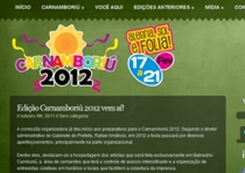 A partir desta sexta-feira, 7, será colocado no ar o site do Carnamboriú – evento que movimenta o Carnaval em Balneário Camboriú. Através da home page o público poderá rever momentos das edições anteriores da festa e acompanhar as novidades para a próxima edição, além de participar de promoções que serão realizadas periodicamente.