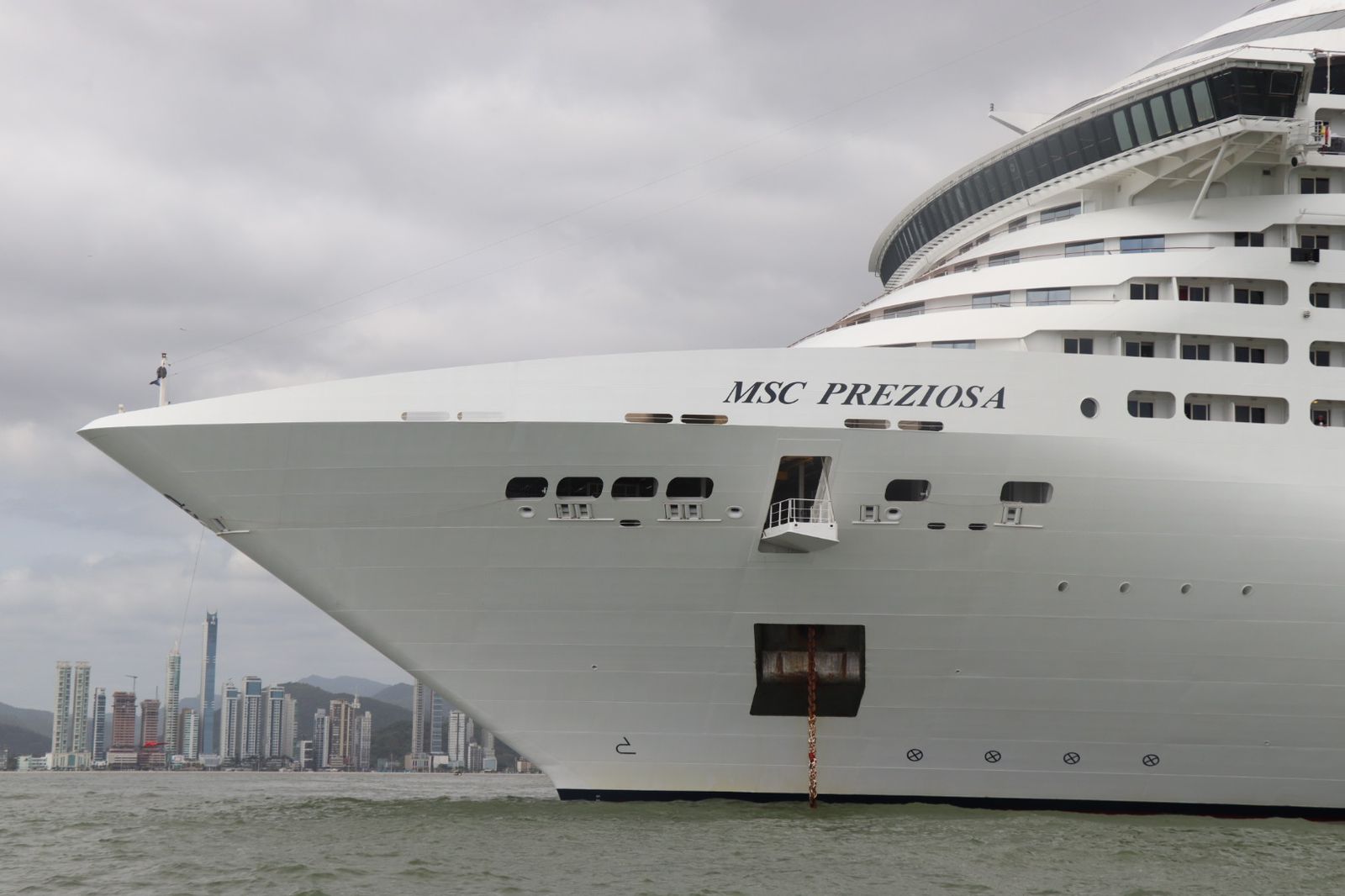 Com 4.060 passageiros e 1.270 tripulantes, o navio MSC Preziosa abriu a temporada de cruzeiros 2023/2024 em Balneário Camboriú na manhã desta quarta-feira (8 de novembro). A embarcação chegou ao Atracadouro Barra Sul por volta das 7h, vinda de Porto Belo, com previsão de seguir viagem às 17h, rumo a Santos (SP).