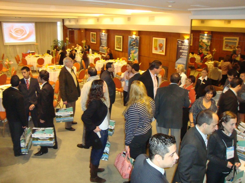 Penúltima promoção da primeira fase do projeto Workshop Trade 2010, a recepção realizada na manhã desta quinta-feira, 19, em Mar del Plata, no litoral da Argentina, atraiu cerca de 60 participantes, integrantes do trade da cidade. O evento apresentou aos operadores, agências de viagens imprensa, no salão de eventos do Hotel Iruña, a beira mar, o café da manhã típico do litoral catarinense, com queijos, pães, bolos e doces de forma geral.