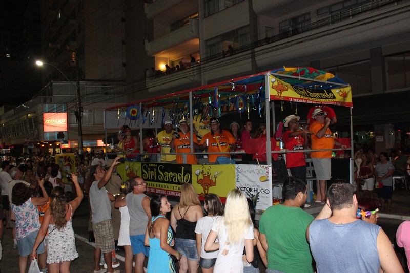 Pela Avenida Atlântica, perto das 23h00, a banda Siri Sarado abriu alas e deu show de alegria com os blocos Mexe Mexe, Vai Sabê e Mas Bah, puxando o público para seguir junto, cantando e dançando as grandes marchinhas de Carnaval.